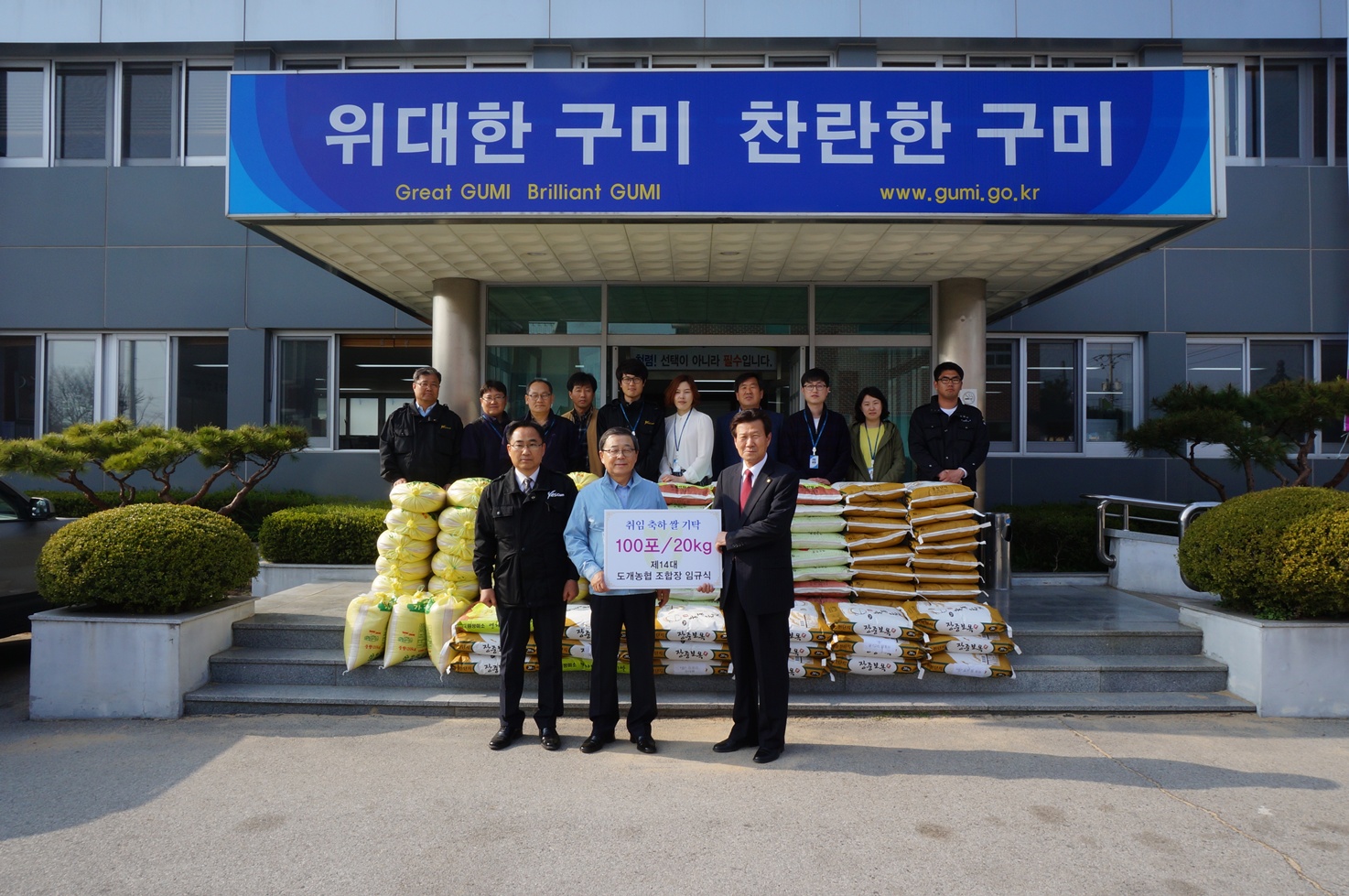이번 기탁한 쌀은 지난 3월 24일 제14대 도개농협 조합장 취임식에 어려운 이웃과 기쁨을 나누고자 축하 화환 대신 쌀로 기증해 줄 것을 요청 받은 것으로 지역 나눔 실천에 앞장서 귀감이 되고 있다.