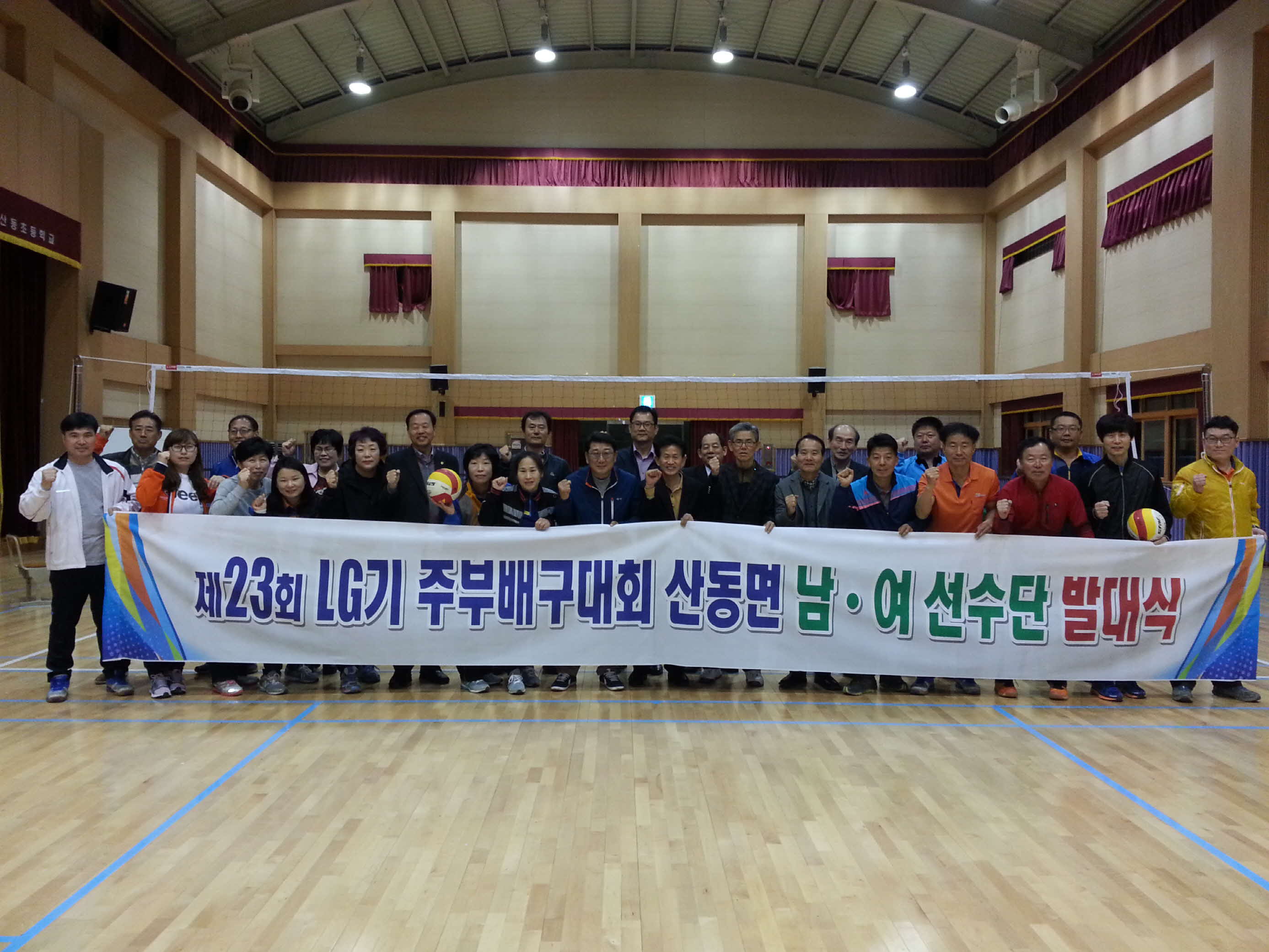 산동면(면장 양승갑)은 4월 9일 산동초등학교 체육관에서 산동면생활체육협의회(회장 박명석) 주관으로 '제23회 LG기 주부배구대회' 남ㆍ녀 배구선수단 발대식을 가졌다.