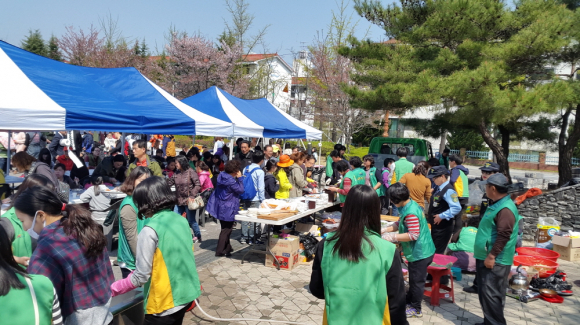 이날 오전에는 4월 새마을알뜰벼룩장터 식당부스 운영을 마치고 경작지로 바로 이동한 회원 40여명은 서로 격려하며 구슬땀을 흘렸으며, 수익금은 연말에 복지시설이나 독거노인 등 어려운 이웃들에게도 쓰여질 계획이다.