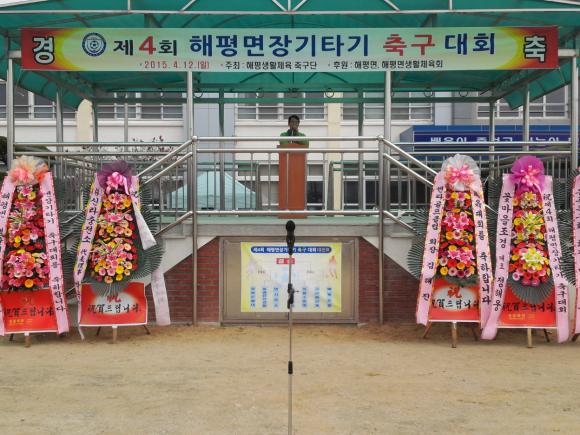 해평면(면장 양희규)은 4월 12일 경북생활과학고등학교 운동장에서 해평면 생활축구단(회장 박용국) 주관으로 구미시 면단위에서는 유일하게 '제4회 해평면장기타기 축구대회'를 개최했다.