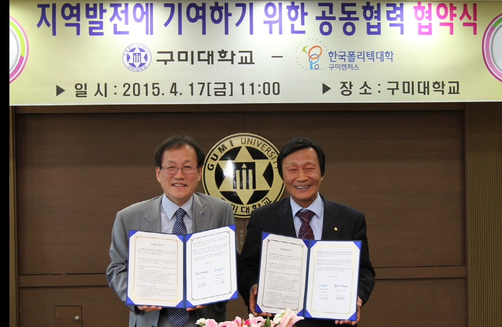 정창주 구미대 총장은 “전문 기술인력 양성에 힘쓰는 지역의 두 대학이 다양한 협력 사업을 추진할 수 있는 뜻 깊은 계기가 마련됐다”며, “특히 일학습병행제와 NCS를 기반으로 하는 교육과정 협력으로 중소기업 인력난과 청년실업 해소에 큰 성과를 기대한다”고 밝혔다.