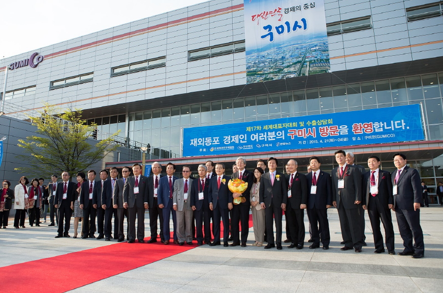 전 세계 34개국 78개도시 500여 명의 한인 경제인이 경상북도 구미에서 지역 기업인들과 동반 성장을 모색하는'제17차 세계대표자대회 및 수출상담회'가 21일 오후 6시 구미코(GUMICO) 전시홀에서 개막했다.
