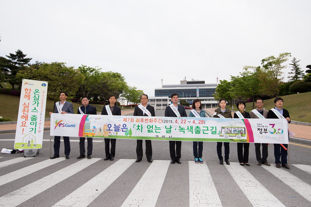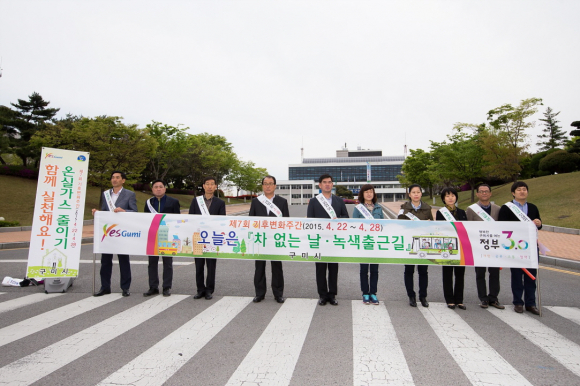 4월 22일에는 구미시 산하 공공기관, 기업체, 유관기관단체의 전 직원이 참여하는 '차 없는 날, 녹색 출근길'실천 캠페인을 전개해 대중교통, 자전거 이용, 도보로 출근함으로써 에너지를 절약하고 저탄소 친환경생활 실천 확산 분위기 조성에 앞장섰다.