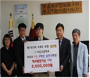 사곡고 송민식 학생, 도전 골든벨 상금 기부