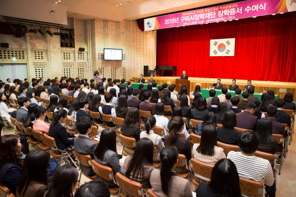 재단법인 구미시장학재단(이사장 남유진)은 4월 25일 구미시청 4층 대강당에서 장학생, 학부모, 재단임원 등 250여명이 참석한 가운데 2015년 장학증서 수여식를 개최했다.