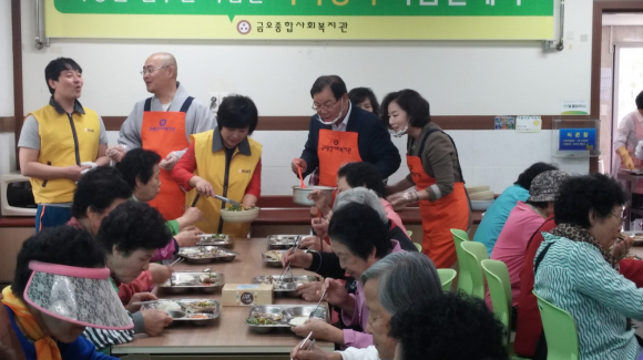 금오종합사회복지관에서 배식봉사 참여