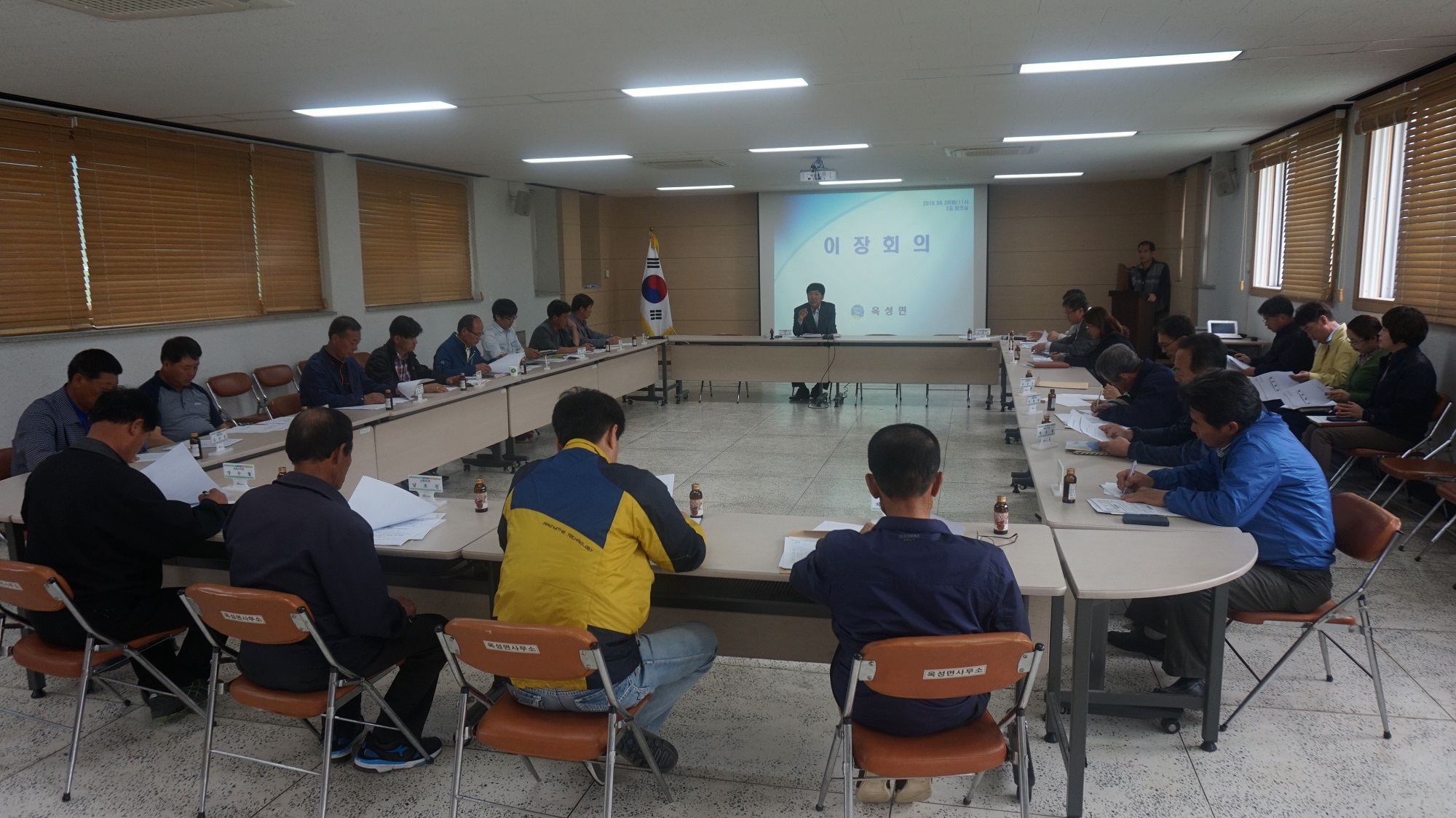 옥성면(면장 이형근)은 4월 28일 면사무소 2층 회의실에서 양진오 시의원, 관내 유관기관장 및 이장 등 21명이 참석한 가운데 4월 이장회의를 개최했다.