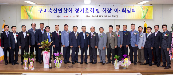 구미시축산연합회(회장 이종하)는 4월 30일 구미농산물도매시장 회의실에서 남유진 구미시장, 시ㆍ도의원, 지역 농축협 조합장, 농업축산단체 대표와 회원 300여명이 참석한 가운데 2015년도 정기총회를 개최했다.