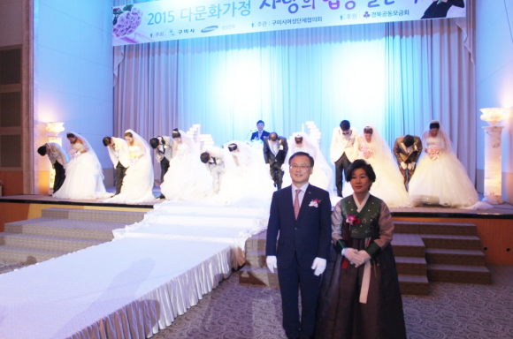 4월 30일 호텔 금오산 그랜드 볼룸에서 구미시(시장 남유진),삼성스마트시티(공장장 심원환)가 주최하고 구미여성단체협의회(회장 김명자)가 주관하는 2015 다문화가정 사랑의 합동 결혼식이 개최됐다.