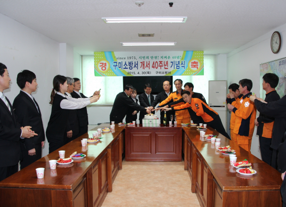 1975년 4월 30일 구미지역 소방업무를 시작으로 구미시민의 안전과 생명을 지켜왔으며, 개서 40주년을 맞아 영상물 상영, 다과회, 체육대회 등이 진행됐다.