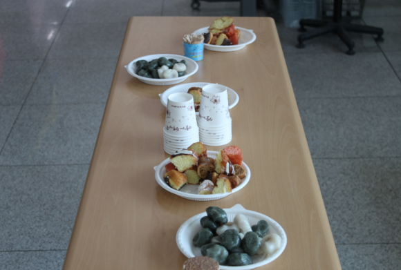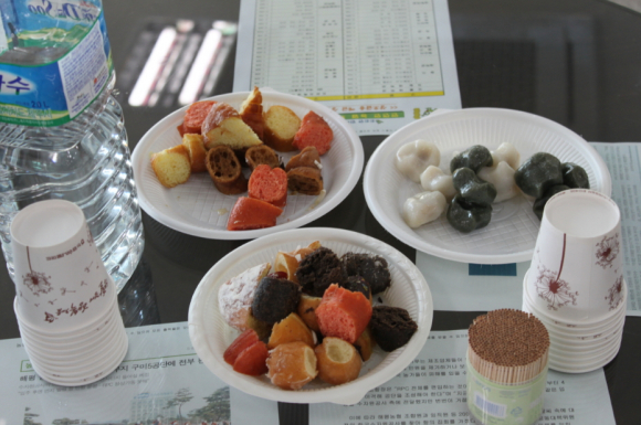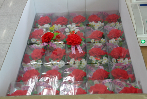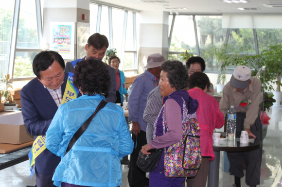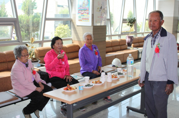 원로조합원에게 카네이션 및 빵, 떡 등을 대접