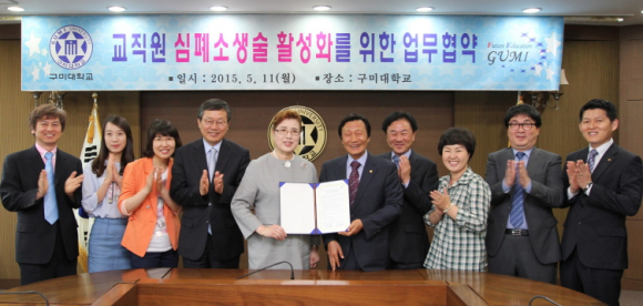 구미교육지원청(교육장 김정숙)은 5월 11일 구미대학교(총장 정창주) 본관에서 심폐소생술 교육 활성화를 위한 업무협약을 체결했다.