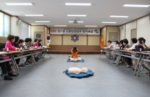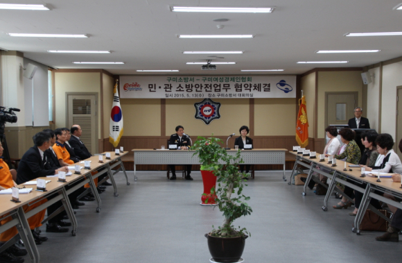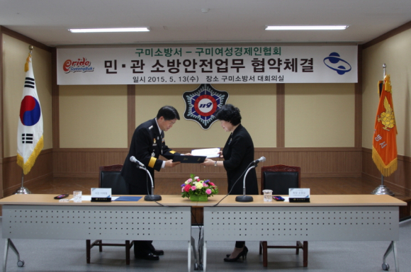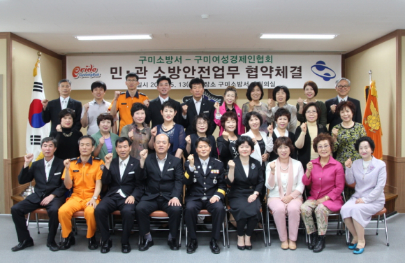 구미소방서(서장 이태형)는 5월 13일 대회의실에서 소방공무원 및 여성경제인협회원 80여명이 참석한 가운데 여성경제인협회(회장 손창순)와 지역기업의 소방안전문화 확산 및 '국민행복 안전정책'의 성공적 추진을 위한 업무협약(MOU)을 체결했다.