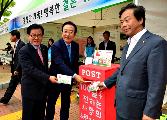 또 시민들과 함께하는 사랑하는 가족에게 편지를 써서 비치된 우편함에 넣으면 100일 뒤 각 가정으로 배달되는 사랑의 느린 우체통 운영 ▶가족사진 찍기 및 가족사랑 액자 만들기, ▶작지만 아름다운 혼례문화 확산을 위한 작은 결혼식 서명 ▶가족놀이체험 등 가족을 주제로 한 다채롭고 흥미로운 체험부스 운영해 인기를 모았다.