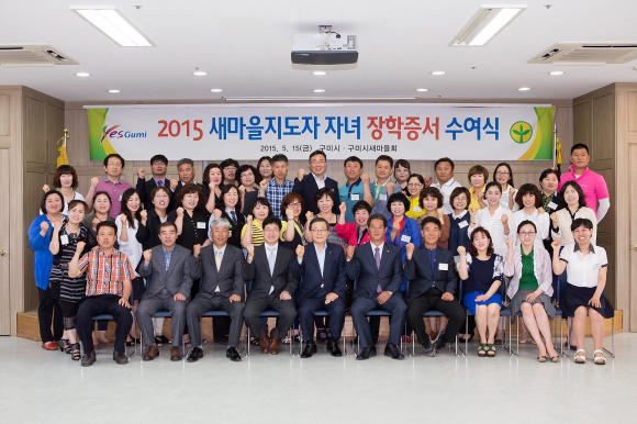 구미시(시장 남유진)와 구미시새마을회(회장 김봉재)는 5월 15일 구미시새마을회 4층 강당에서 5개 새마을단체장님과 장학금 수혜자의 부모인 새마을지도자 50여명이 참석한 가운데‘2015 구미시새마을지도자 자녀 장학증서 수여식’을 개최했다.