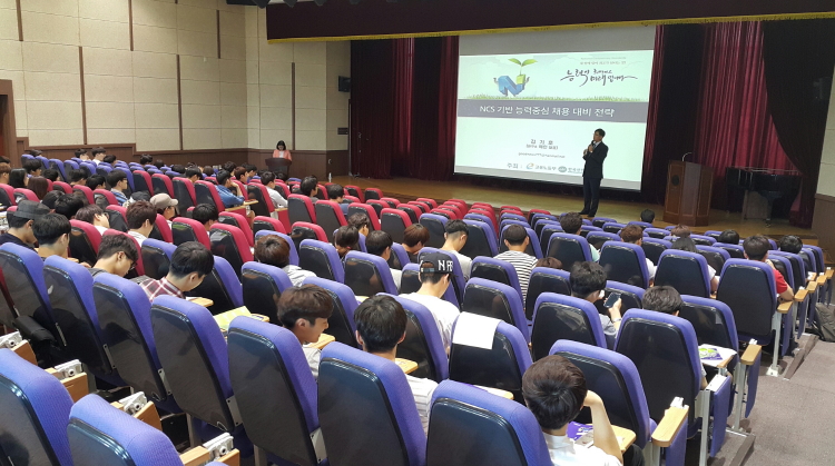 지난 5월 28일 구미대학 대강당에서 실시된 이번 설명회에서는 인사채용 컨설팅 전문가인 ㈜연구소 혜인의 김기호 대표가 참석해 150여명 취업준비생들의 눈높이에서 NCS 기반 능력중심 채용의 준비방안을 소개했다.