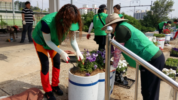 이번 식재는 상모로타리와 사곡 철로변 및 도로변 공한지를 대상으로 실시했으며, 참여한 이들은 무더운 날씨에 연신 땀방울을 흘리면서도 주민들에게 잠시나마 웃을 수 있는 여유와 작은 기쁨을 선사할 수 있다는 기대감에 즐거운 마음으로 바쁜 손길을 이어나갔다.