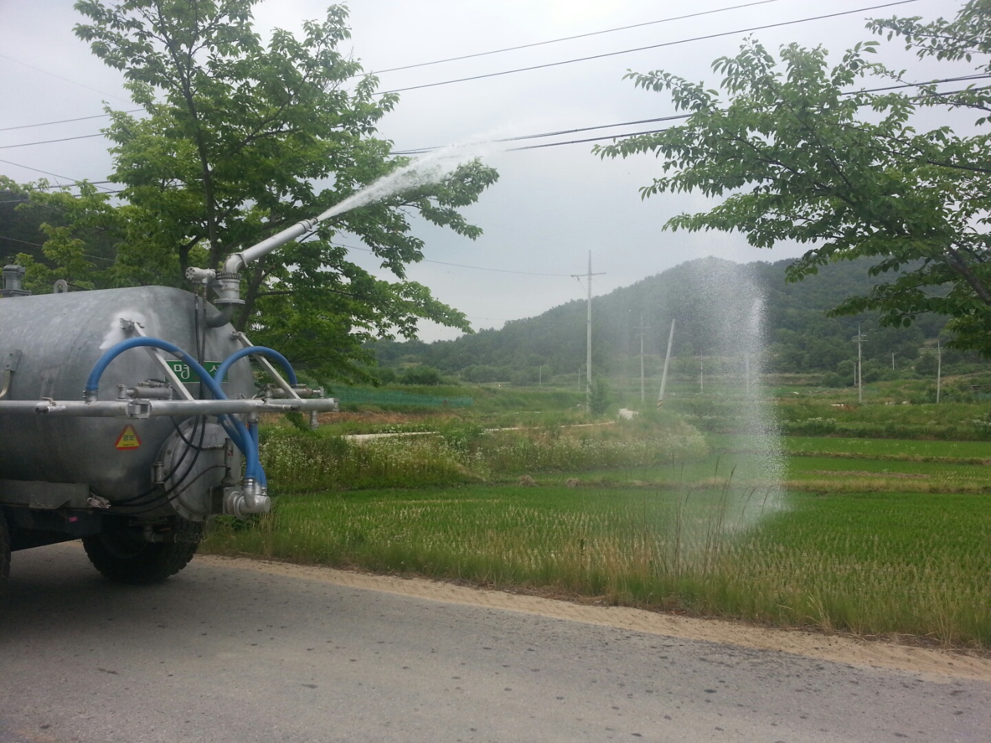 대한한돈협회 구미지부 액비수송 탱크로리 26톤 2대와 옥성면 발전협의회 이용진 회장의 액비살포 6톤장비 2대를 지원받아 1050톤의 물을 공급하고 포크레인을 동원해 농업용수 굴착작업을 실시했다.