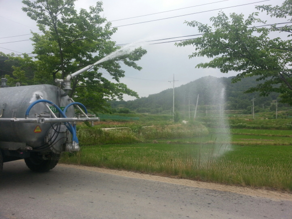옥성면(면장 이형근)은 지속된 가뭄으로 인한 농민들의 아픔을 함께하고 농작물 피해를 줄이기 위해 물고갈이 심한 옥성면 산촌리에 대한한돈협회 구미지부와 관내농가 탱크로리 차량을 지원받아 농업용수를 공급했다.