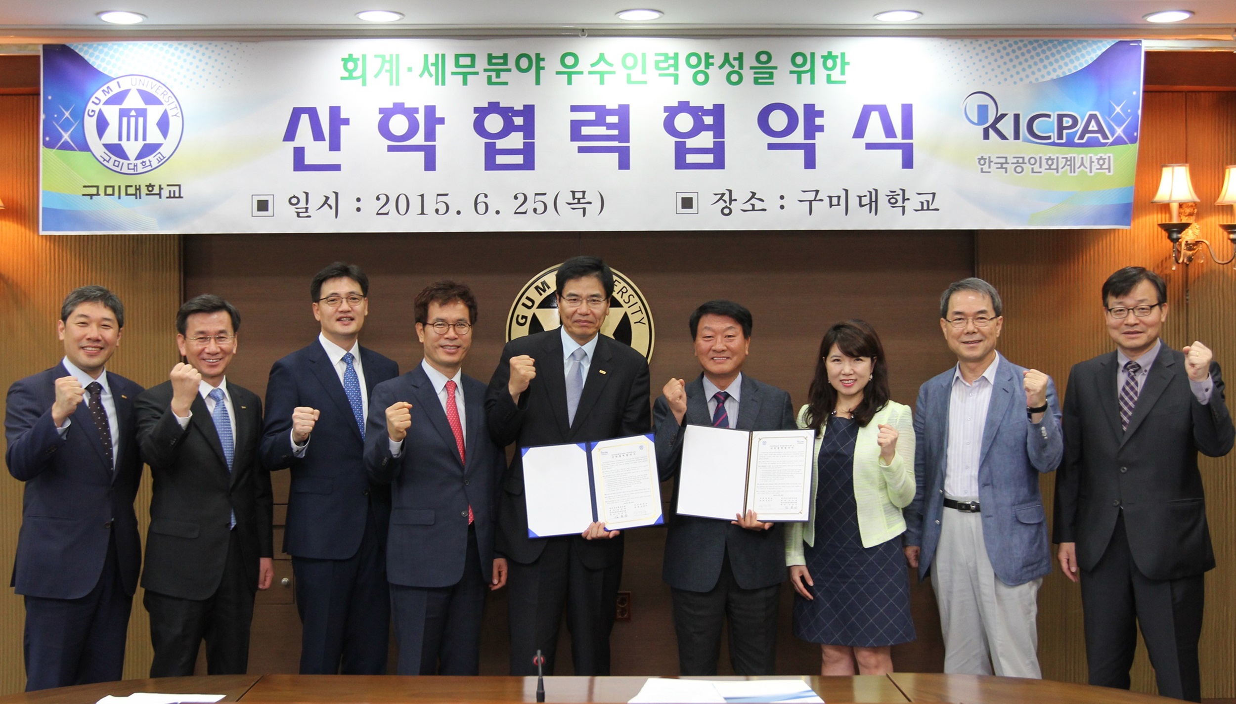 구미대학교(총장 정창주)는 6월 25일 본관 3층 회의실에서 한국공인회계사회(회장 강성원)와 상호발전을 위한 산학협력 협약(MOU)를 체결했다고 밝혔다.