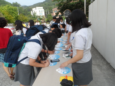 특히, 서명에 동참한 학생들에게는 이 날 행사를 위해 별도로 제작한 부채를 배부했으며, 서약서의 내용이 그대로 적힌 이 부채에는 학생들이 일상생활 속에서도 정보윤리의식을 늘 인식할 수 있도록 하자는 취지가 담겨 있다. 이날 캠페인 활동에 참여한 아름누리지킴이 권○성 학생(형곡중 1학년)은 “이번 캠페인 활동을 통해 우리 학교 학생들이 사이버 폭력, 스마트폰 중독과 같은 문제점을 인식하고 이를 개선하기 위해 노력했으면 좋겠다”고 소감을 밝혔다. 안성자 교장은 “다양한 프로그램으로 진행되는 정보윤리학교 운영을 계기로 학생들은 올바른 사이버인성과 정보윤리의식을 함양하게 될 것”이라며, 아울러“이러한 교육활동은 나아가 인터넷·스마트폰 중독 및 사이버폭력 예방 등에도 크게 기여할 것”이라고 정보윤리학교 운영 효과에 대한 기대감을 드러냈다.