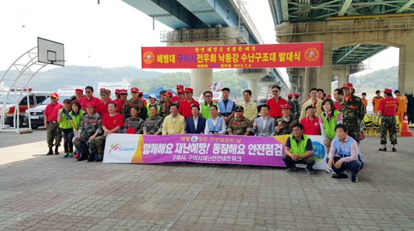 구미시(남유진 시장)은 7월 4일 구미대교 아래 둔치에서 해병대 구미시 전우회 회원 및 관계자 120명이 참석한 가운데 2015년 수난구조대 발대식을 개최했다.
