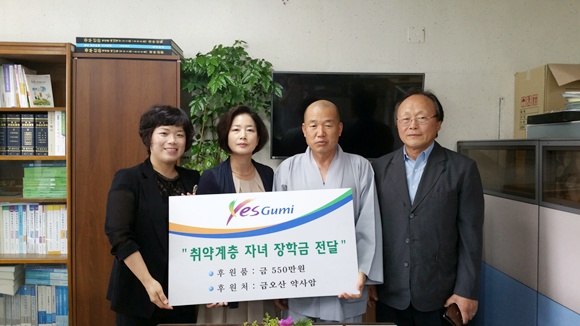 금오산 약사암(주지 대안스님)은 7월 6일 취약계층 자녀 11명에게 장학금 총 550만원을 전달했다.