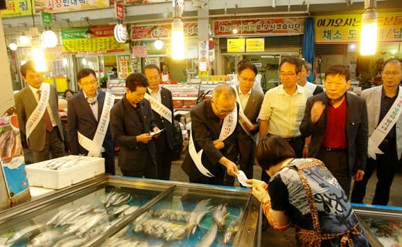 회장단 구미새마을중앙시장 방문, 장보기 행사 가져