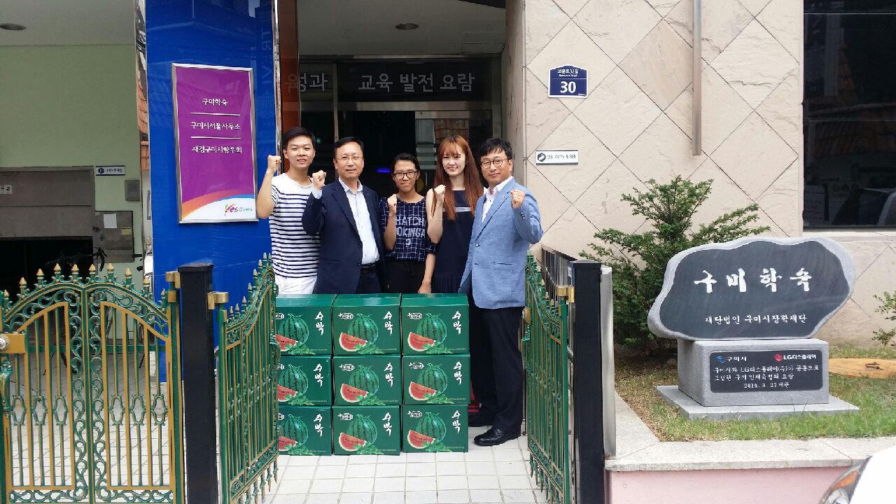 농협중앙회 구미시지부(지부장 이기욱)는 7월 18일 서울 구미학숙을 방문해 수박(20만원 상당)을 전달하고, 학업정진에 힘쓰는 학숙 입사생들을 위로격려했다.