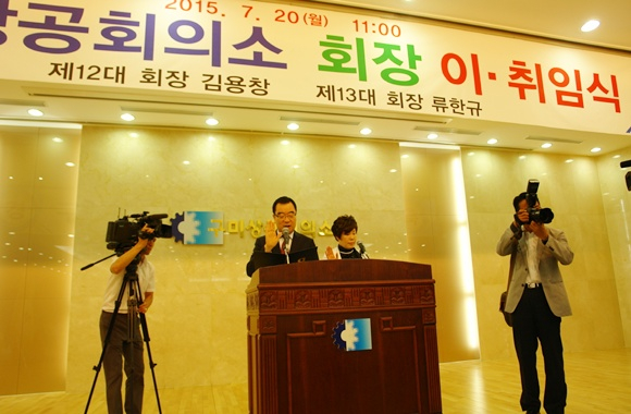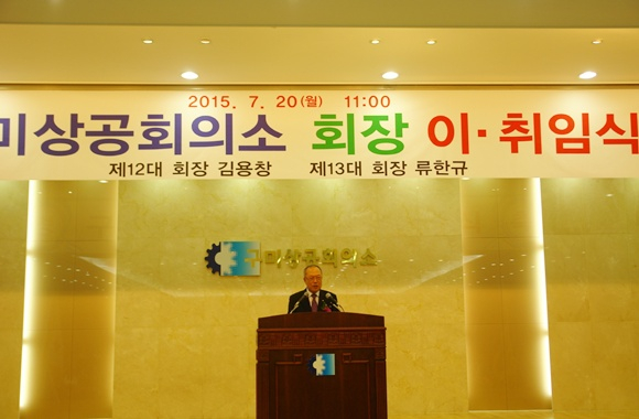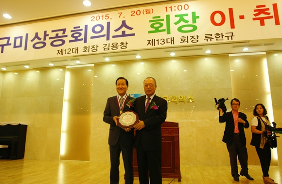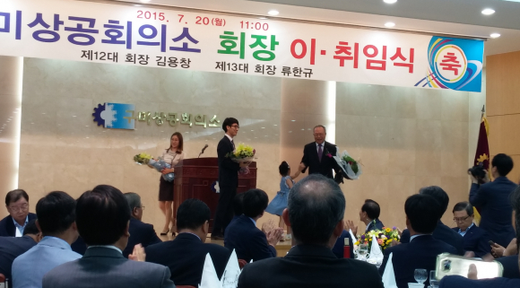 제13대 구미상공회의소 회장으로 당선된 류한규(예일산업(주) 대표) 회장이 7월 20일 구미상공회의소 2층 대강당에서 취임식을 가졌다.