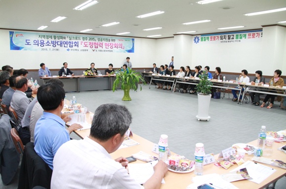 경상북도 의용소방대 연합회(회장 남구중, 김묘라)는 7월 21일 구미공단 대영정밀 회의실에서 지역경제 활성화와 경주 실크로드 대축전 성공개최를 위한 ‘경상북도 의용소방대 연합회 도정협력 현장회의’를 개최했다.