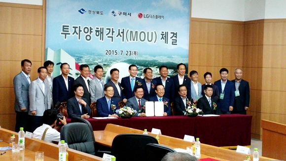 구미시·경상북도·LG디스플레이(주)가 7월 23일 LG 사업장에서 플렉서블OLED(유기발광다이오드) 1조 500억원 신규투자 투자양해각서(MOU)체결했다.