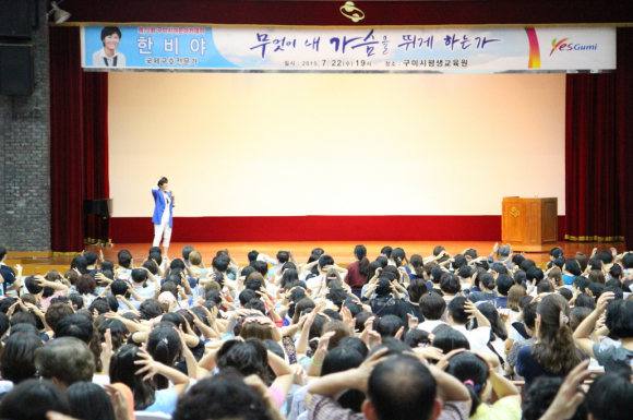 구미시평생교육원(원장 박세범)은 7월 22일 국제구호전문가 한비야를 초청, ‘무엇이 내 가슴을 뛰게 하는가’라는 주제로 제70회 야은아카데미 대시민 특강을 개최했다.