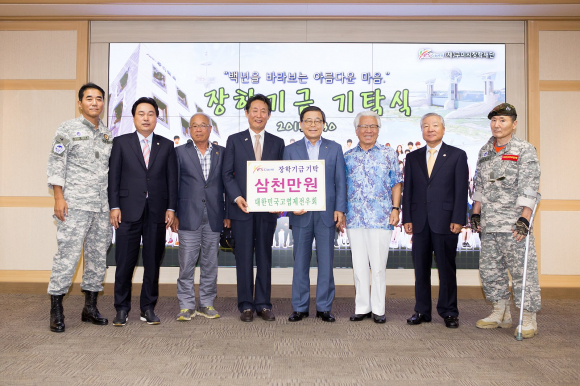 이날 기탁식은 대한고엽제전우회(회장 강인호)에서 3,000만원, (주)케이디파워(대표 박희일)에서 1,000만원, (주)영진종합물류(대표 김태성)에서 500만원, (주)인당(대표 서인숙)에서 500만원, (주)신양(대표 김재후)에서 300만원, 구미시청 세무과(과장 이영활)에서 300만원, 안전생활실천시민연합구미시지부(회장 김중천)에서 200만원, 천생산무지개식당 (대표 장재도)에서 200만원,