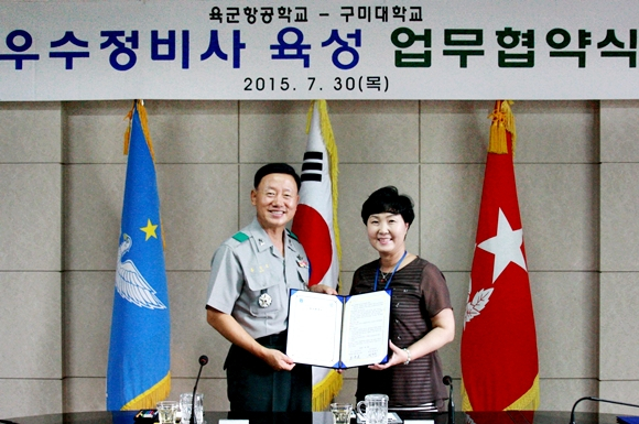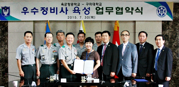 구미대학교(총장 정창주)가 국내 전문대 최초로 육군항공학교(학교장 준장 홍덕표)와 우수부사관 육성 및 특수부사관과 활성화를 위한 업무협약(MOU)을 맺었다고 8월 3일 밝혔다.