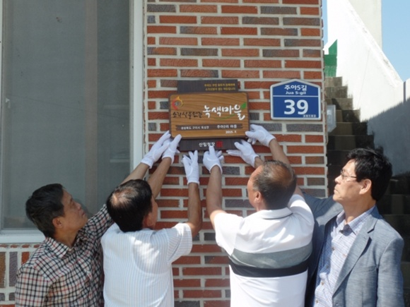 이번에 선정된 옥성면 주아2리에는 녹색마을 현판과 함께 부상으로 50만원의 온누리 상품권을 전달했다.