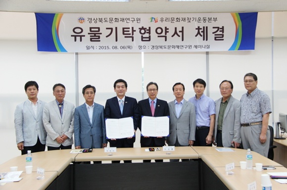 (사)우리문화재찾기운동본부(대표 박영석)는 8월 6일 경상북도문화재연구원(원장 박재홍)을 찾아 국외소재 환수 문화재 보존·관리 위탁보관을 위한 협약을 체결하고 수증 받은 유물 5점을 위탁했다