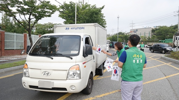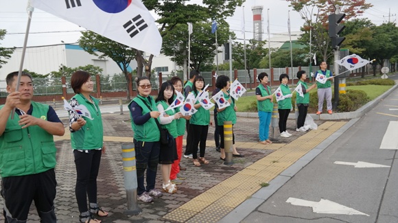 구미시새마을회 주관으로 열린 이번 행사에서는 이재학 새마을지도자구미시협의회장 및 김경자 구미시새마을부녀회장을 비롯해 인동동 이외에도 산동면, 장천면, 진미동, 양포동 등이 참여해 나라사랑 태극기 달기 캠페인, 차량용태극기 500개를 배부했다.
