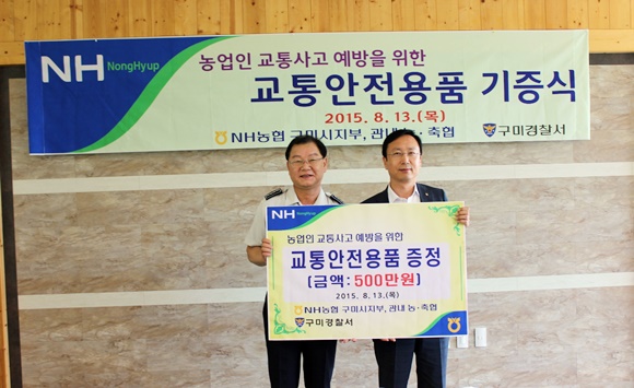 관내 농축협 500만원 상당 교통안전용품 구미경찰서에 전달