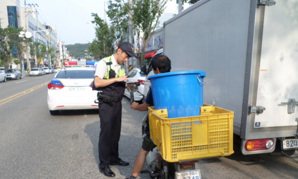 구미경찰서, 안전모 미착용 배달원에게 교통사고 예방 적극 홍보