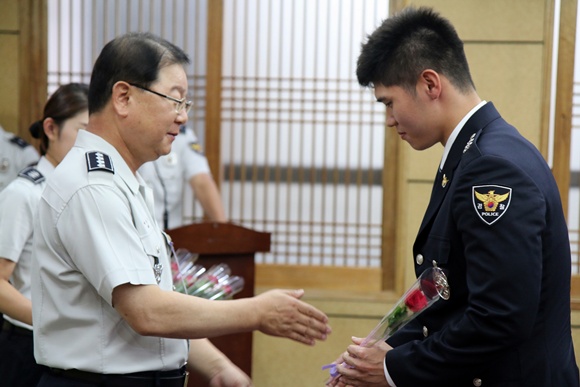 이날, 환영식에서는 이준식 경찰서장이 신임순경들에게 직접 장미꽃을 전달하며 환영했다.