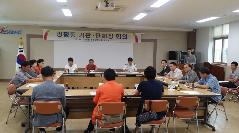 광평동(동장 이관응)은 8월 21일 주민센터 2층 회의실에서 김정곤 시의원 및 관내 기관단체장 17명이 참석한 가운데 시정 홍보 및 당면 현안사항에 대한 대화의 시간을 가졌다.