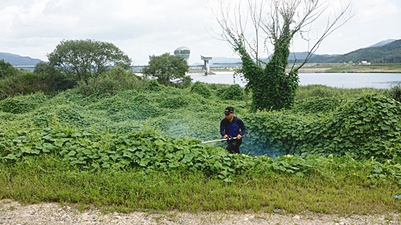 김대식 회장은 “가시박은 꽃대가 생기기 전에 제거해야 종자번식을 최대한 막을 수 있다며, 무더운 날씨에도 불구하고 우리 자연보호회원들이 가족같이 한마음으로 합심하여 우리 지역 생태계를 보호하는데 조금이라도 도움이 되어서 기쁘다”며 회원들을 격려했다.