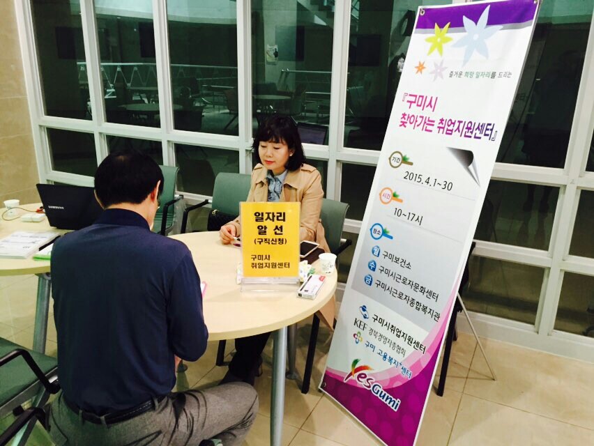 이번 한 달 동안 선주원남동 주민센터(월요일), 구미시립도서관(수요일), 경북생활과학고등학교(금요일)를 찾아가 취업전문상담사들이 구직자에게 취업진로 상담 및 알선 등을 해주고 적성검사, 이력서 작성 및 면접요령 교육 등을 통하여 취업의 자신감도 심어준다.
