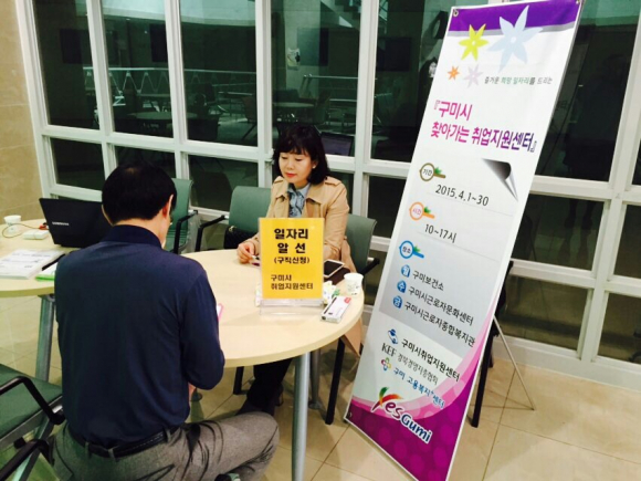 한편, 구미시 취업지원센터는 2009년 설립되어 상시 취업상담을 통하여 2014년도에는 취업상담 969건, 취업502건의 실적을 내었으며, 구미시민 누구나 전화(461-5515) 또는 방문(구미고용복지플러스센터 3층)해 취업상담을 받을 수 있다. |