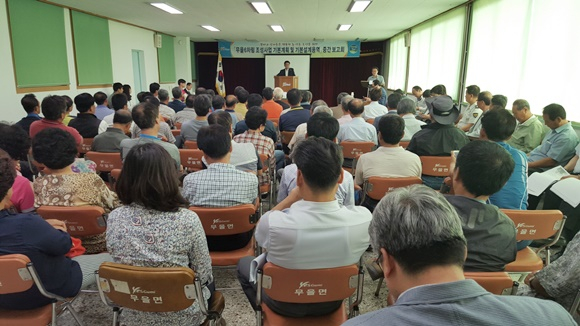 지난 9월 4일 무을면사무소 2층 회의실에서 도·시의원 및 자문위원, 지역주민, 도 관계자 등 200여 명이 참석한 가운데 ‘무을6차림 조성사업 기본계획 및 기본설계용역’ 중간보고회를 개최했다.