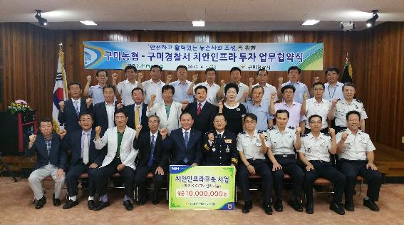 구미경찰서(서장 이준식)는 최근 구미농협(조합장 김영태) 대회의실에서 구미농협과 치안인프라 확충에 투자하는 업무협약을 체결하고, 구미농협의 치안인프라 구축 기금(1천만원)으로 안전하고 활력 있는 지역사회를 조성키로 했다.