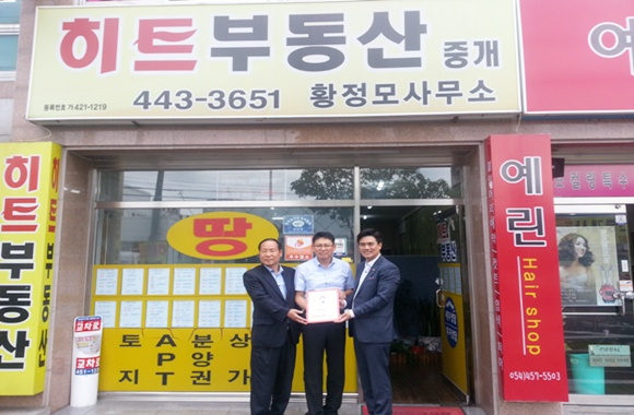 매월 매출의 일정액을 지역의 어려운 이웃들을 위해 기부해 나눔을 실천하는 ‘착한가게’ 현판식이 지난 9월 16일, 형곡동 서울퓨전떡집, 봉곡동 히트부동산에서 진행됐다.