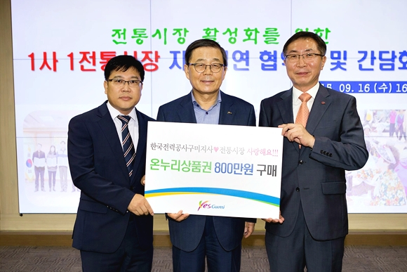 특히, 온누리상품권이 발행 된 이래 총 230억 원 상당을 구매해 전통시장 활성화에 큰 역할을 하였는가 하면, KR-EMS를 비롯한 4개사에서는 올해 상반기 동안 694백만 원 상당의 식자재를 전통시장을 통해 납품 받아 지역경제 살리기에 한몫 톡톡히 하기도 했다. 남유진 구미시장은, “전통시장이야말로 우리 공동체의 삶과 문화가 녹아든 장소로, 전통시장이 살아야 서민생활이 안정되고 지역경제가 살아난다”며 오늘 협약식에 참석한 기업체 및 기관․단체 관계자들에게 앞으로 전통시장에 더욱 많은 관심과 이용을 당부했으며, 아울러 상인회 측에도 서비스 개선 및 교육으로 발전된 시장의 모습을 보여주기를 당부했다.