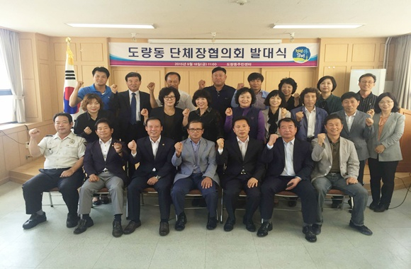 도량동(동장 최현도)은 9월 18일 동주민센터 2층 회의실에서 이태식 도의원, 김재상, 박세진, 안장환 시의원, 기관단체장 등 30명이 참석한 가운데 단체 역량 결집을 위한 단체장협의회 발대식 겸 기관단체장 연석회의를 개최했다.